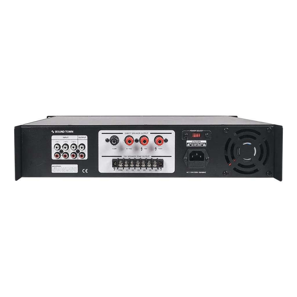 Bộ khuếch đại công suất đa vùng đi kèm với 3 bộ đầu vào RCA, 2 đầu vào mic và đầu ra Bluetooth, USB, đài FM và đường dây RCA, đầu ra loa dương màu đỏ 70V / 100V / 4~16-ohm và đầu cuối đầu ra loa âm dùng chung . Các tùy chọn đầu vào và đầu ra linh hoạt của nó cho phép bạn dễ dàng thiết lập tính năng này trong nhiều ứng dụng nhiều phòng. Mỗi đầu vào 2 mic đều có điều khiển tiếng vang, cả 6 vùng đều có nút chỉnh âm lượng riêng biệt.
